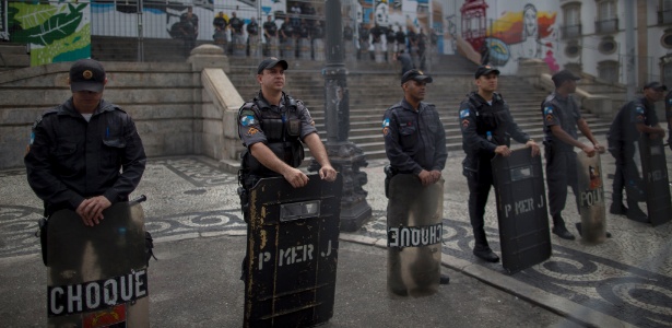 O Choque e a cavalaria foram chamados para ajudar na segurança. Houve agressões a manifestantes que estavam com máscaras de gás. Segundo PMs ouvidos pela reportagem, a orientação do comando militar é manter a integridade do patrimônio público e permitir a manifestação, desde que não seja violenta. O comandante da operação estava em reunião na Alerj e ainda não falou sobre o caso.