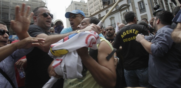 Após a ordem, dezenas de manifestantes, em sua maioria integrantes de forças de segurança do Estado --PM, Polícia Civil e Corpo de Bombeiros-- se dirigiram ao local em que estavam os outros participantes do ato, dando início a um empurra-empurra e troca de xingamentos.